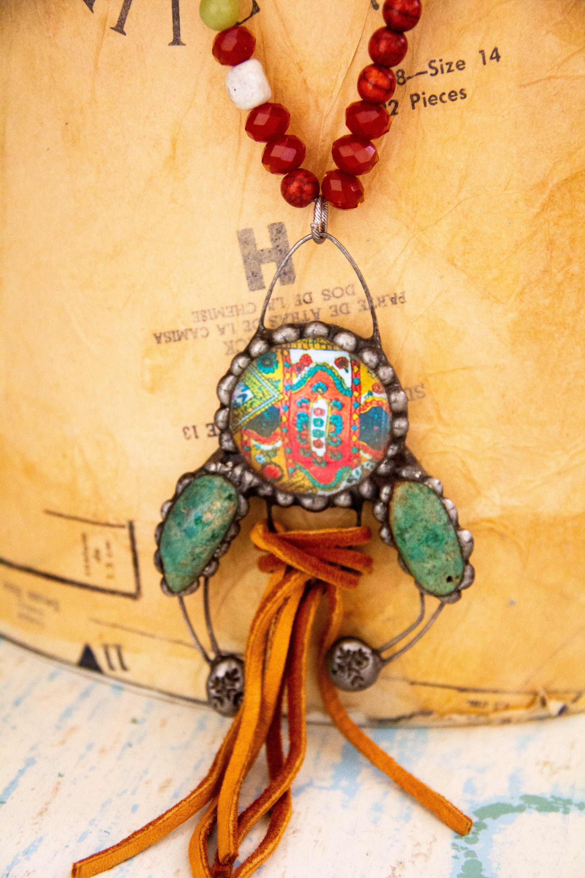 This beautifully beaded necklace with it's turquoise Naja is not only a stunner but one that will grab attention.