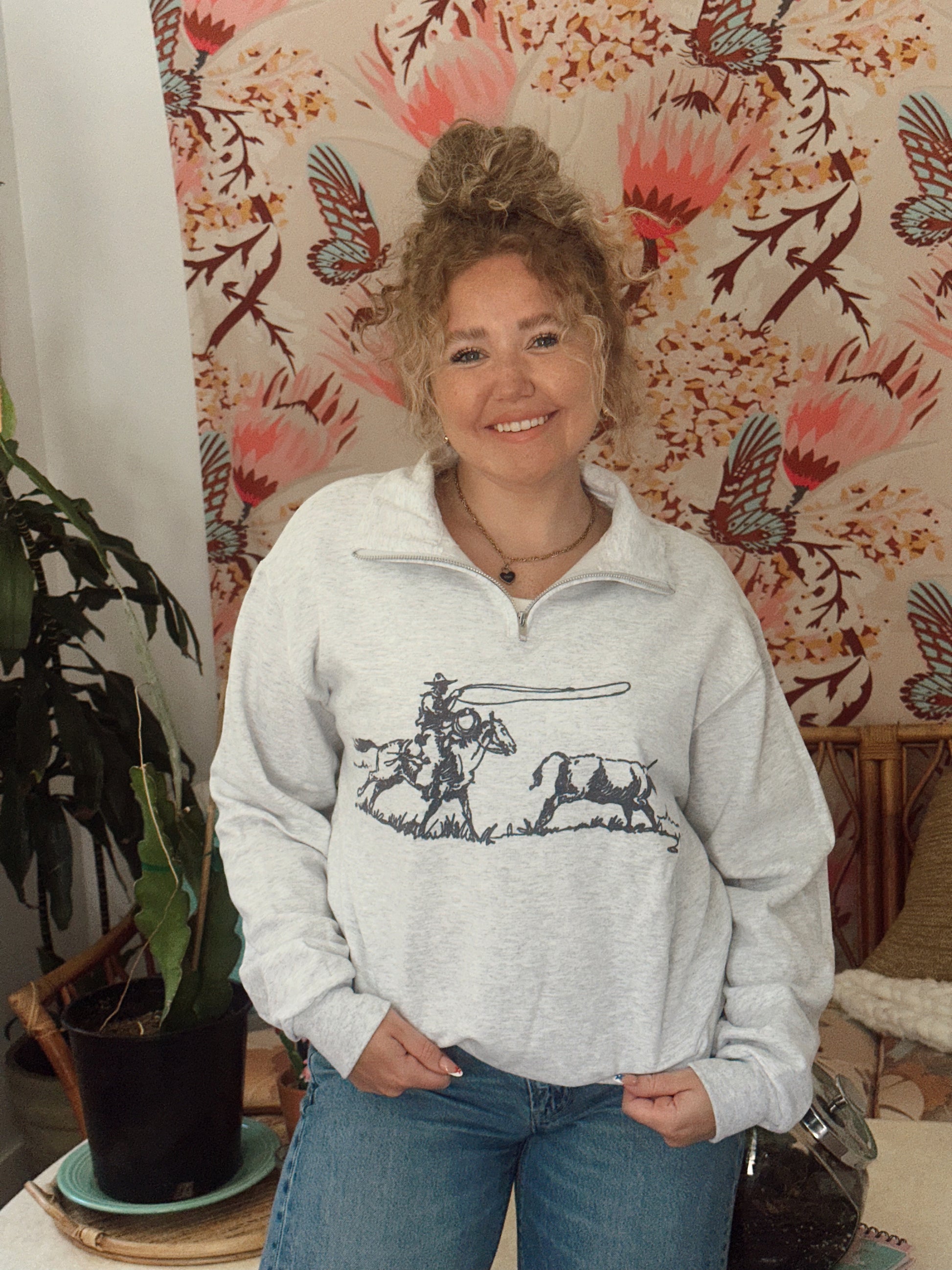 Can’t beat a classic quarter zip. This is something we typically don’t carry but when I saw the cute graphic and style I was sold! Cute with jeans or shorts, unzipped with jewelry, or just how it is! Fit’s true to size!